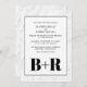 Cette invitation ultra moderne est simpliste et audacieuse. Il dispose d'un arrière - plan en marbre blanc avec typographie noir et blanc et d'un grand monogramme moderne. Parfaitement tendance et sobre. Simple et moderne.