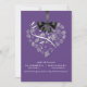 Ce faire-part de mariage élégant magnifique comporte une forme de coeur remplie de fleurs blanches sensibles et un ruban graphique et un arc de satin noir. Moderne et romantique ceci préparera certainement le terrain pour votre jour spécial. Facilement customisé. Un bon nombre de couleurs à choisir de. (prune)