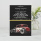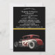 Hot Rod faire-part de mariage incendie a une flamme orange brûle et autour d'une vieille voiture. En bas au milieu et un arrière - plan noir avec un endroit pour mettre tout votre texte invitation. Ce design unique combine un faire-part de mariage formel avec une illustration vibrante de canne chaude. La section supérieure présente des détails sur son nom et son nom célébration mariage le "samedi 18 janvier 20XX" à Vancouver, en Colombie-Britannique. Ci-dessous, une canne chaude puissante et de couleur vive avec moteur exposé et tuyaux d'échappement avance, créant un contraste saisissant de thèmes. tous personnalisables.