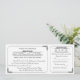Cette invitation de mariage imprimée dans le style d'un billet vintage en noir et blanc classique incorpore également une carte-réponse RSVP détachable. Des cadres simples aux coins arrondis sont accentués de délicats motifs de feuilles ornementaux et vintage. Les noms de la mariée et du marié ainsi que le titre de la réponse RSVP sont également mis en valeur avec des motifs décoratifs. Au verso, l'adresse de retour peut être ajoutée à la réponse RSVP et d'autres détails sur le mariage à la partie invitation. La ligne de coupe pour la carte-réponse est indiquée au dos de l'invitation par une ligne pointillée pâle et une image de ciseaux.