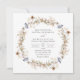 Invitations amis et la famille à votre cérémonie de mariage avec cette élégante invitation, avec une couronne de fleurs sauvages aquarelle et un revers bleu poussiéreux.