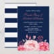 Faire-part de mariage moderne et chic avec des roses aquarelles et un motif à rayures. Parfait pour votre mariage printanier sur le thème floral. Décoré de belles fleurs et de feuilles. Personnalisez le texte pour toute occasion spéciale telle que douche de mariée, fête de fiançailles, douche bébé, fête d'anniversaire ou anniversaire de mariage. La couleur de fond peut être personnalisée pour s'adapter à votre thème de couleur.
