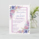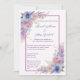 Ce faire-part de mariage d'une beauté classique présente des fleurs romantiques aquarelles en bleu, violet et rose.
