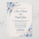 Belle faire-part de mariage fleurie bleue avec des touches de rose et d'or. Ajoutez une personnalisation qui inclut les hôtes du mariage (à la fois les familles, la famille de la mariée ou du marié, etc.) et la ligne de demande de présence.