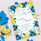 Faire-part de mariage floral bleu romantique jaune