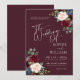 Boho Burgundy et Blush Floral Faire-part de mariage. Cette invitation est caractérisée par des roses boho bordeaux et rougis et des fleurs avec deux polices de haute classe modernes qui façonnent les tendances des événements festifs actuels et futurs.