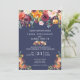 Faire-part de mariage correspond à notre collection de fleurs de Paprika Bourgogne, avec une goutte florale d'aquarelle d'une magnifique palette de bordeaux, or, corail, rougis et verdure encadrant les détails faire-part de mariage avec un arrière - plan bleu marine. Tout le texte est entièrement personnalisable.