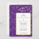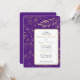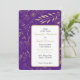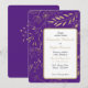 Faire-part de mariage floral feuille d'huile d'or. Elégant cadre doré et violet avec lettrage Or et noir.