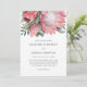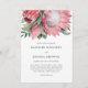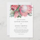 Magnifiquement élégant et populaire choix dans les fleurs de mariage, ce design unique de faire-part de mariage dispose d'un arrangement floral aquarelle de fleurs et bourgeons King Protea exotiques. Les couleurs comprennent le rose clair et foncé, le bordeaux, le gris turquoise et l'argent. Modifiez l'exemple de texte avec les détails de votre mariage. Appartenant à l'une des plus vieilles familles de fleurs du monde, la fleur Protea a des associations mythologiques avec changement et transformation. Symbolisant diversité et courage, King Proteas se développe abondamment en Afrique du Sud et en Australie, ainsi que commercialement à Hawaï et en Californie. Ils sont en saison tout au long de l'automne, l'hiver et le printemps. Ils font un bel accent aux bouquets mariages.