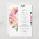 Envoyez de jolis faire-part de mariage floraux rose et gris. Choisissez entre un prénom en cursive ou en caractères d'imprimerie. Version 2