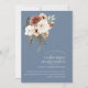 Rustique Dusty Blue Peach Floral Mariage Bienvenue Invitation. Élégamment invitation vos invités à votre jour de mariage avec ce faire-part de mariage élégant avec un beau mélange de bleu poussiéreux, de fleurs vert pêche et olive sur un arrière - plan bleu poussiéreux. Cette Invitation a un beau design floral et botanique, avec des vibes rustiques et boho, parfait pour votre mariage d'inspiration florale ou fleur sauvage. La disposition minimale et simple attire l'attention sur la pêche luxuriante, les éléments floraux élégants posés sur un arrière - plan bleu poussiéreux. Cette invitation donnera le ton d'un beau cadre mariage entouré d'un décor de mariage bleu poussiéreux et de fleurs sauvages pêche et crème. Un complément parfait à toute célébration botanique ou boho-chic.