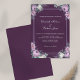Cette faire-part de mariage violet foncé présente des pivoines d'aquarelle blanches et violettes, de la lavande, des formes géométriques et de la typographie. Idéal pour un mariage extérieur. Trouvez les articles correspondants dans Lavender Purple Floral Mariage Collection. Un fichier imprimable est disponible.