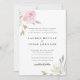 Faire-part de mariage floral classique à l'aquarelle pastel, encadré par un bouquet de fleurs peintes en rose doux, blanc et sauge. Les détails de votre mariage sont mis en surbrillance avec toutes les lettres noires.