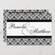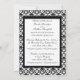 L'invitation formelle blanche et noire de cette belle damassé est complètement personnalisable. La conception de couverture a le grand texte pour les noms des jeunes mariés et le verso a l'abondance de la pièce pour votre information de mariage. N'oubliez pas les accessoires assortis !