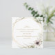 Cette faire-part de mariage géométrique en or d'eucalyptus est parfaite pour votre mariage boho élégant. Il est conçu avec de simples fleurs d'anémones bohémiennes blanches et violettes, des feuilles de sauge à l'aquarelle simpliste et des cadres d'hiver modernes en feuille d'or. Avec son mélange de fleurs blanches et de verdure rustique, vous serez sûr de créer l'atmosphère de vos rêves.