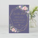 Cette carte de faire-part de mariage chic et moderne présente un cadre géométrique doré orné de magnifiques fleurs rose pâle et lavande à l'aquarelle. Conçue pour correspondre à notre collection de mariage Delight. Personnalisez-la facilement et rapidement avec vos détails, il suffit d'appuyer sur le bouton Personnaliser pour réorganiser et formater le style et l'emplacement du texte. (c) The Happy Cat Studio