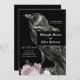 Belle faire-part de mariage sombre avec un corbeau vintage et des roses sur un arrière - plan noir. Parfait pour un mariage gothique ou d'Halloween.