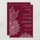 Éblouissez vos invités avec cette faire-part de mariage traditionnelle avec un élégant art du henné contre un arrière - plan bordeaux. Ajoutez simplement les détails de votre événement sur ce modèle facile à utiliser pour en faire une invitation unique.