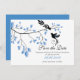 Notre carte d'annonce de mariage élégante et moderne "save the date" d'automne est la touche de classe parfaite pour annoncer votre mariage à vos amis et à votre famille. Notre carte "save the date" élégante aux oiseaux amoureux présente un couple d'oiseaux amoureux assis sur une branche avec des feuilles bleues sur fond blanc avec un dos de feuille assorti. Visitez notre boutique pour voir les timbres-poste, les autocollants et les aimants "save the date" assortis. Ce design est proposé dans plus de 12 choix de couleurs dans notre boutique et est parfait pour une annonce de mariage d'automne.