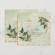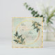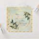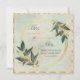 Un faire-part carré encadré d'or avec une belle bordure de verdure vert pâle et un texte délicat