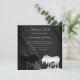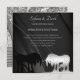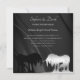 Un beau design de faire-part de mariage carré photo. Pour les couples qui souhaitent un design de faire-part de mariage simple mais élégant. Le design présente les noms des mariés dans une police d'écriture élégante. Présenté en noir et argent avec un fond noir élégant en spirale. Personnalisable avec votre photo de fiançailles et les détails du mariage. Conçu par Robin D. Cox.