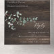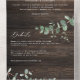 Faire-part de mariage moderne à base de eucalyptus botanique vert sauge, détails et carte de RSVP. Design rustique moderne et épuré.
