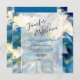 Une invitation de mariage moderne avec hydrangeas bleus et blancs pour votre jour spécial.