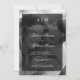 Ces invitations de mariage modernes et minimalistes présentent votre propre photo couvrant complètement l'arrière-plan. Une superposition noire transparente contient tout le texte de votre invitation de mariage ainsi que vos initiales, et votre monogramme apparaît également au dos.