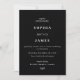 Cette faire-part de mariage moderne et élégante présente vos détails en lettres blanches et nettes, en les opposant à un arrière - plan personnalisable. Choisissez parmi une variété de couleurs pour correspondre à votre thème mariage. Complétant parfaitement notre collection Modern Elegance, cette invitation ajoute une touche sophistiquée et intemporelle à votre journée spéciale.