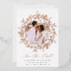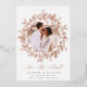 Cette carte élégante de faire-part de mariage photo présente une couronne de fleurs sauvages en silhouette avec votre photo et une calligraphie stylisée. Pour une personnalisation avancée de ce design, veuillez cliquer sur le bouton bleu de l'outil de conception ci-dessus !