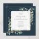 Doté de délicats feuilles d'aquarelle rustique à l'eucalyptus sur un arrière - plan bleu marine. Cette faire-part de mariage botanique moderne peut être personnalisée avec vos détails spéciaux de jour de mariage. Conçu par Thisisnotme©