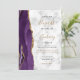 Le bord gauche de cette élégante faire-part de mariage moderne est orné d'une bordure d'aquarelle violette ornée d'une parties scintillant en faux or. Le texte personnalisable associe écriture manuscrite noire et dorée, polices cuivre et italique sur un arrière - plan gris et blanc en marbre. La motif en marbre gris et blanc est répétée au dos de la carte.