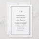 Élégant, simple et formel, notre faire-part de mariage monogramme intemporel en ivoire Ecru chaud comporte une bordure géométrique noire encadrant vos détails mariages en lettrage classique, surmonté de vos initiales, monogrammes ou duogrammes. Le texte modèle dans cette version est élaboré avec le libellé pour la mariée et le marié accueillant le mariage, avec les parents ou les familles mentionnés dans la ligne d'introduction.