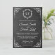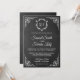 Éblouissez vos invités avec cette faire-part de mariage de style vintage avec une élégante bordure blanche ornée et un beau monogramme contre un arrière - plan de tableau noir. Ajoutez simplement les détails de votre événement sur ce modèle facile à utiliser pour en faire une invitation unique.