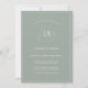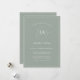 Faire-part de mariage Monogramme Vert Sage Simple. Impressionnez vos invités mariages avec ce faire-part de mariage vert mousse tendance avec un magnifique script blanc, avec les initiales de la mariée et du marié sur un arrière - plan vert sage. Cette Invitation a un design vert mousse étonnant, avec des vibrations modernes et minimes, parfait pour votre mariage simple, tendance, minimaliste. La disposition minimale et moderne attire l'attention sur le script Initial, en contraste avec l'arrière - plan vert clair. Cette invitation donnera le ton d'un beau cadre mariage, entouré de fleurs neutres ou de sauge verte, et d'une décoration mariage vert pastel assortie. Un complément parfait à toute célébration moderne et sobre. Le Collectif du dimanche © par Rachel Hannah Gee
