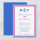Cette invitation moderne est idéale pour célébrer un mariage à thème nautique. Il comporte une ancre au centre avec les initiales de la mariée et le marié de chaque côté. Une solide bordure rose et bleue rayée lui donne un impact visuel pour un look élégant mais audacieux. Idéal pour un couple élégant. Communiquez avec "marlenedesigner" si vous désirez modifier le libellé ou la couleur de ce dessin.