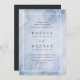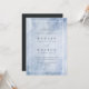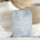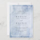 Le faire-part de mariage moderne et chic, inspiré de pierres apparentes, est doté d'un arrière - plan d'aquarelle bleu pastel avec une double bordure blanche et des détails mariages dans un élégant lettrage noir cassé.