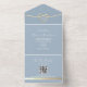 Voici notre élégante invitation de mariage tout-en-un dans une teinte bleue poussiéreuse captivante. Avec les initiales du monogramme de la mariée et du marié à l'intérieur d'un cœur de corde dorée, cette invitation dégage une sophistication moderne et un charme intemporel.