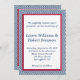 Cet invitation de mariage a une frontière classique de rayure de chevron dans bleu et blanc. Le texte bleu est enfermé dans une frontière rouge. C'est invitation travaillerait également pour 4 juillet épouser. Customisez et personnalisez le texte des deux côtés avant la commande.