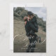 Faire-part de mariage personnalisé avec photo. Un design élégant et classique de 'Sauver la date' de mariage avec un texte de calligraphie cursive blanche. Personnalisable avec votre photo et vos détails.