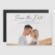 Carte de faire-part de mariage photo écriture moderne. Le dos est un aimant. Cliquez sur le bouton modifier pour personnaliser ce design avec vos photos et les détails de votre mariage.
