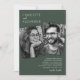 Planifier une journée de mariage inoubliable commence par une belle invitation à donner le ton, et cette invitation minimaliste offre une combinaison parfaite de l'élégance moderne et de la personnalisation. Avec un arrière - plan vert mousse botanique, 2 photos de la mariée et du marié, et un élégant modèle texte moderne pour vos détails mariages, cette invitation fera une impression durable. Au verso, une photo à tirage complet vous permet de la remplacer par la vôtre, ce qui vous permet d'apporter une touche personnelle. Pour une faire-part de mariage design et moderne, ne cherchez pas plus loin que ce superbe design minimaliste.