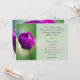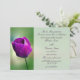 Invitations de mariage avec une fleur assez pourpre de tulipe sur un fond vert. Photo rentrée le R-U.