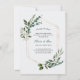 Envoyez un faire-part à votre famille et à vos amis pour leur faire savoir que la date de votre mariage a été modifiée. Carte avec de la verdure aquarelle avec feuillage sur un cadre géométrique doré. Personnalisez avec vos informations ou cliquez sur "Cliquez pour personnaliser davantage" pour modifier les styles de police, la taille et les couleurs.