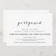 Pour les couples qui souhaitent un design de mariage simple mais élégant. Elke Clarke © Le design présente les noms des mariés dans une police de caractères élégante avec le mot "reporté". Affiché en noir et blanc, mais peut être personnalisé selon vos couleurs de mariage pour le texte et l'arrière-plan. Ajoutez d'autres éléments graphiques, photos ou monogrammes pour personnaliser ce modèle.