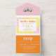 Faire-part de mariage rétro brillante et audacieuse. Faire-part de mariage orange rose et jaune. Ce modèle d'invitation contemporain vous invite à personnaliser pour l'événement parfait. Invitation moderne avec police rétro vintage. Invitation Boho avec marguerites lumineuses, arc photo et code QR. Une invitation simple et moderne conçue numériquement.