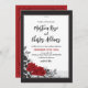 Cette faire-part de mariage rose de style romantique dispose d'un cadre noir avec deux roses rouges entrelacées de feuilles noirs et de tourbillons. Le dos de l'invitation est un cadre noir sur un arrière - plan rouge. Achetez les articles de mariage de coordination à comparer (vendus séparément). Les articles correspondants se trouvent dans notre collection "Roses rouges romantiques entrelacées".