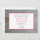 Une faire-part de mariage amusante et vibrante avec une photo d'une marguerite rose chaud qui regarde de gauche au-dessus d'un arrière - plan de bois d'écorce. Le côté opposé est constitué d'un arrière - plan en bois d'écorce avec du texte au centre dans un rectangle blanc surligné de rose chaud correspondant à la marguerite. Personnalisez avec les détails de votre événement. L'écriture est celle des parents de la mariée.