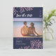 Un élégant faire-part de mariage de plage avec des coraux roses pâles scintillants sur fond bleu nuit, accentué de calligraphie moderne. Envoyez-moi un message si vous souhaitez le design dans une palette de couleurs différente. Conception originale et illustrations par Kitty Pie Prints.
