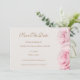 Un doux design floral avec des roses roses blush et un script élégant en or sur un fond blanc ivoire.